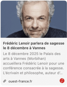 Dans cette conférence, Frédéric Lenoir parlera de la sagesse, telle que l’ont défini les écoles philosophiques grecques : la recherche d’une vie bonne et heureuse. Il montrera aussi quels sont les piliers universels de la sagesse que l’on retrouve dans tous les grands courants philosophiques et spirituels de l’humanité et comment ces préceptes peuvent nous aider à gagner en liberté et en joie et à relever les défis de notre temps.